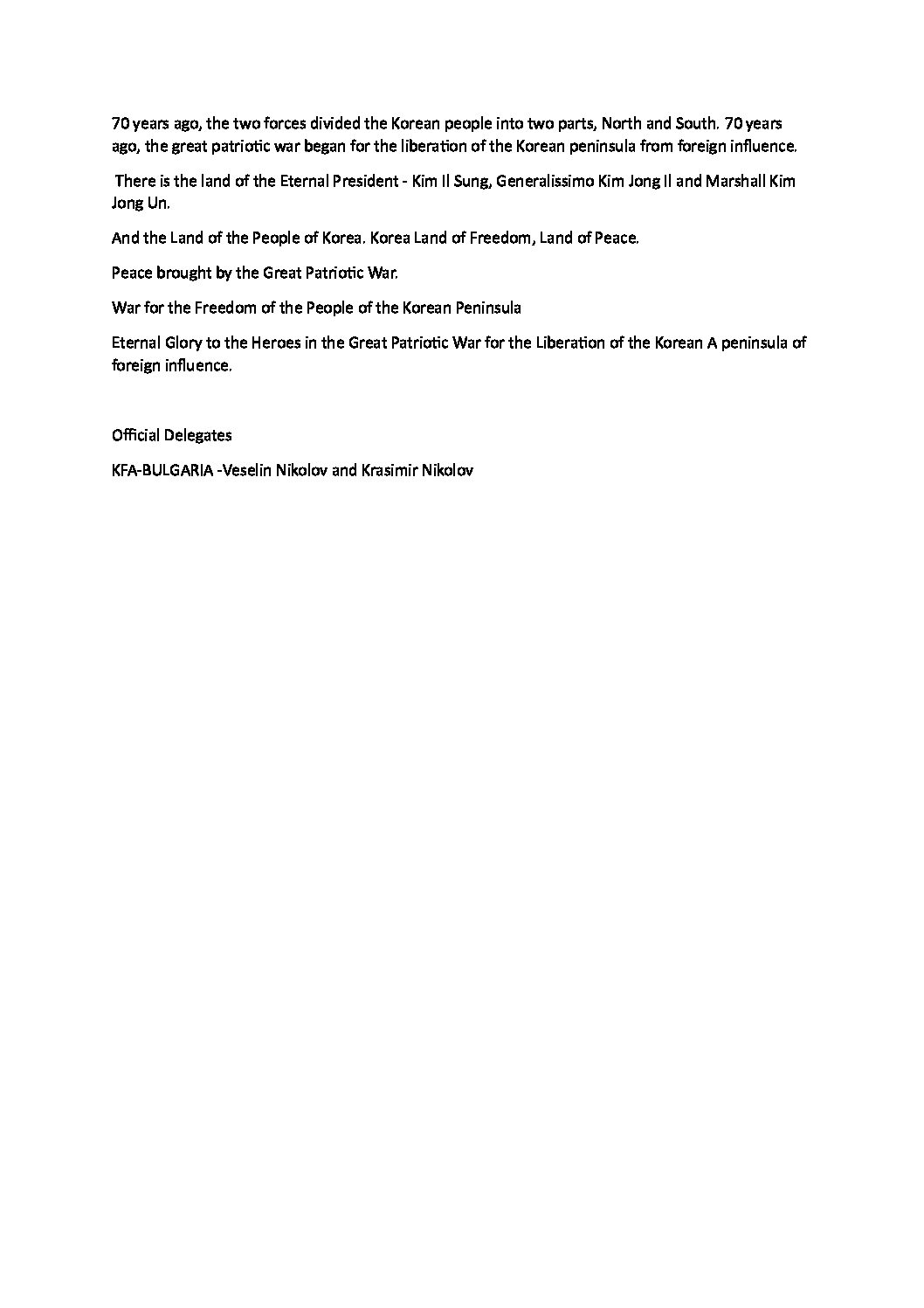 Kim Il Sung not only defended the prestige, honour and sovereignty of his country and the climate for its independent development but also firmly secured the peace of humankind by checking and crushing the US strategy for world domination and thus preventing another world war.