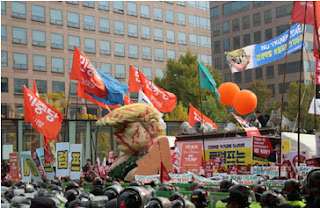 Actions against U.S. President Trump’s visit to Seoul were staged across south Korea on Nov. 7 and 8.