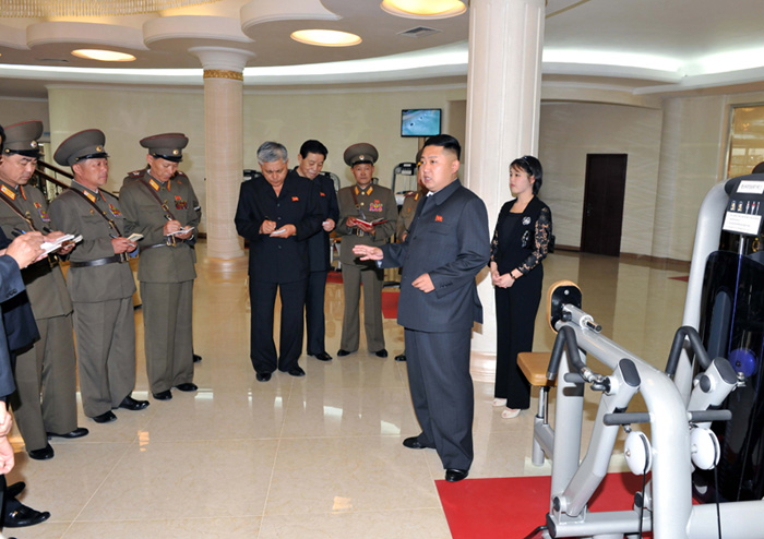 Kim Jong Un gives field guidance to the Fitness Center in Thongil Street