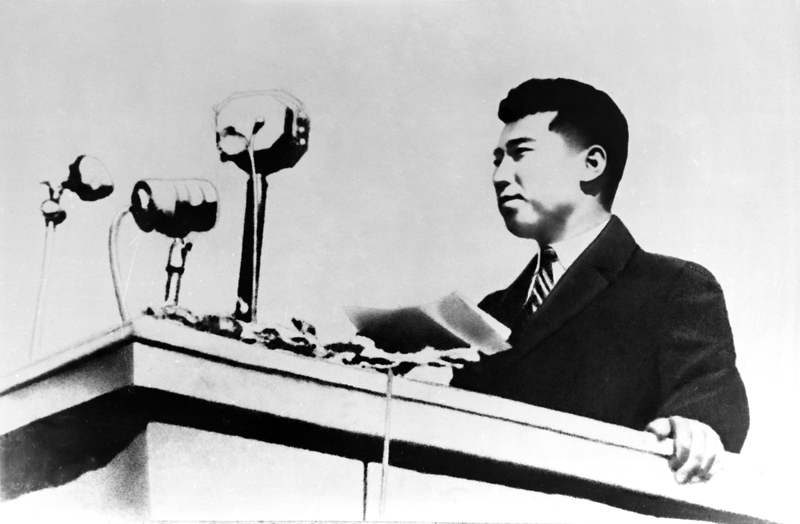 President Kim Il Sung delivers a speech at a mass meeting of welcome held in Pyongyang