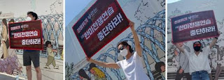 South Korean entertainers strongly demanded cancellation of the joint military drill.