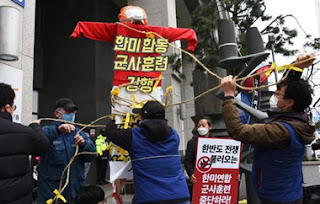 Nationwide rallies in demand of suspension of the joint military rehearsal took place across south Korea.