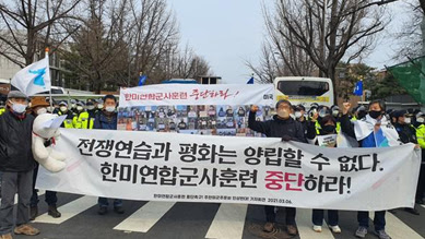 On March 9, an online meeting was held to demand the suspension of the joint war exercise with the participation of residents from sixteen regions of south Korea.