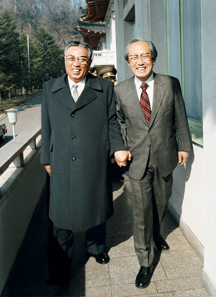 President Kim Il Sung meets Rev. Moon Ik-hwan