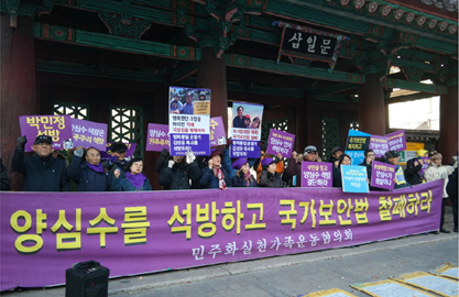 The Family Movement for Realizing Democracy held the 1152nd Thursday rally in Seoul on January 4 to demand the release of prisoners of conscience and repeal of the “Security Law”.