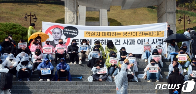 Carrying placards reading “Yun Seok-yol, away with you!”, “Get out of here!” and “You can never fool us again!” they staged a strong protest to block the way of Yun and his suit.