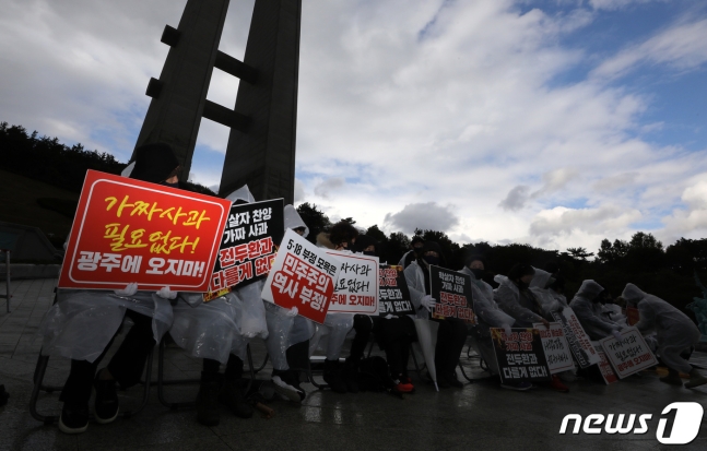 Gwangju people from all walks of life who are well aware of his inside made themselves a thick wall to keep Yun away from the national cemetery.