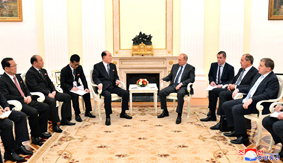 Kim Yong Nam, president of the Presidium of the DPRK Supreme People’s Assembly, who was on a Russia visit to attend the opening ceremony of the 2018 FIFA World Cup finals, met with Russian President Vladimir Putin in the Kremlin on June 14.