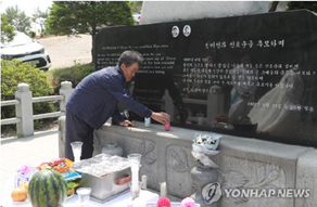 A memorial service for Shin Hyo-sun and Sim Mi-sun, who had been killed by US army vehicle, took place at the scene of the accident on June 13, seventeen years ago.