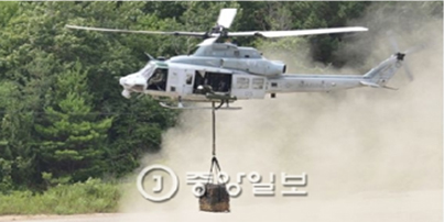The drill was staged in which the south Korean and the US marines attack core facilities deep inside the rear of the DPRK through landing operation under the fire support of fighters, helicopters and guns.
