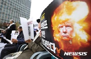 All-people rallies against Trump’s visit took place in Seoul, Daejon, Daegu, Busan, Ulsan, south Korean Gangwon, North Cheolla and South Gyeongsang provinces and other parts at the same time under the sponsorship of the Anti-Trump Joint Action.