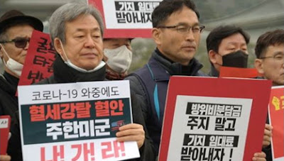 It is not the defense cost sharing but the expenses for stationing in south Korea. The U.S. army is forcing the south Korean authorities the hike of expenses with wages of the south Korean employee in the US military bases as a bait. It is just something like only gangster can do. We cannot pay even a penny to the U.S. The U.S. force in south Korea leave south Korea. We will make a vigorous struggle until the U.S. army is withdrawn from south Korea, the vice chairman in the Korean Confederation of Trade Unions said.