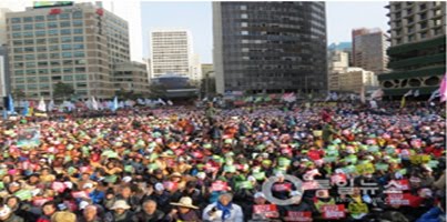 It demanded the resignation of the Park regime, suspension of labor reform, opposition to import of foreign made rice, creation of employment of the youth, discontinuance of withdrawal of street vendors, and railroading of “state censorship of history textbook” for middle and high schools.