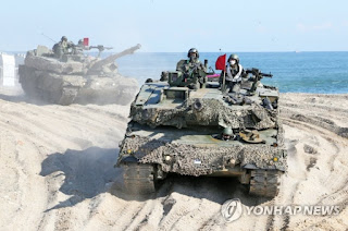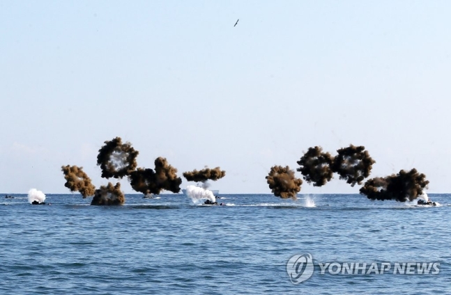 Military maneuvers against the north staged in the air, on the ground and the sea