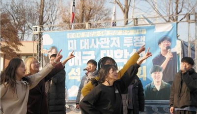 The issue of defense cost sharing shows lopsided relationship between south Korea and the US. Let’s fight together to put an end to the unequal relationship with US. The People’s Party will stand in the van to release the patriotic students, the representative of the Youth People’s Party said.