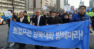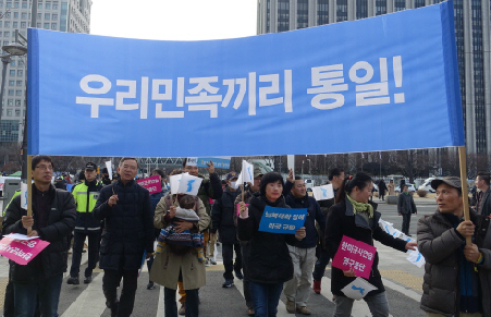 On March 3, an organization composed of 28 groups including the South Headquarters of the Pan-national Alliance for Korea’s Reunification, the People’s Democratic Party and the movement headquarters for peace treaty held a rally to denounce the U.S. hamstringing the process of inter-Korean ties in front of the U.S. embassy in Seoul.