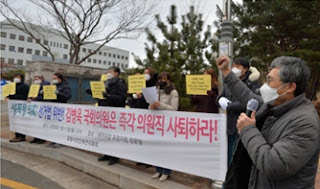 South Korean media Voice of People reported that the opposition People’s Power Party which has ballyhooed about sexual scandals of the other parties came under strong public criticism for revelation of its past sexual scandals. According to the media, a civil organization at Pohang of North Gyeongsang Province had a news conference to condemn Kim Byeong-uk who is on trial outside the branch office in Pohang of a district public prosecutor’s office in Daegu. They condemned Kim’s voluntary resignation of his membership of the PPP and asserted his retirement of membership of the National Assembly. And Chung Jin-gyeong left his office for he was spotted while sexually abusing girl students when he was university professor. The media reported that the PPP is stigmatized as the sexual scandal party though it has changed its name. |