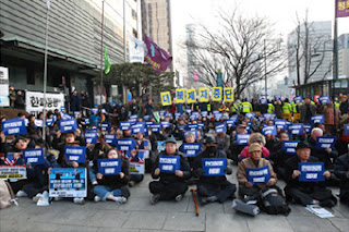 South Korean civic organizations held a news conference in front of the U.S. embassy in Seoul on Jan. 10 to demand the U.S. stop the sanctions on the DPRK and the intervention in internal affairs.