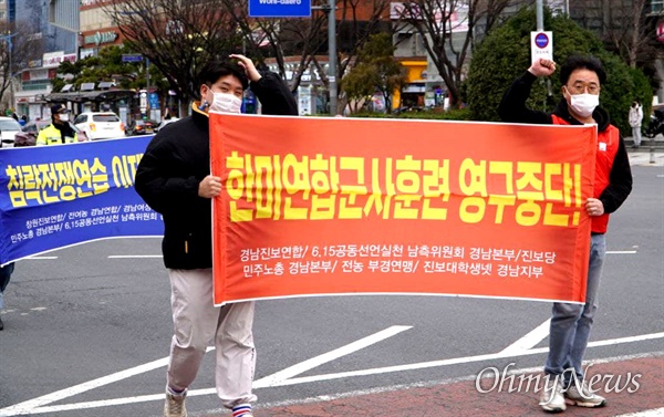Civil organizations of different strata carry out dynamic drive against the north Korea-targeted war exercise.
