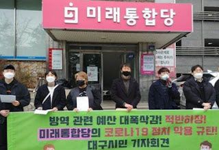 The south Korean people are condemning the UFP which is abusing COVID-19 for the upcoming general election due in April