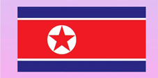 The national flag of the DPRK is a rectangular, blue-and-red flag. (The ratio of the length to the width is 1:2.) It has a wide red panel in the centre, which is symmetrically bordered above and below by two thin white stripes and two blue stripes, and a five-pointed red star within the white circle near the hoist.