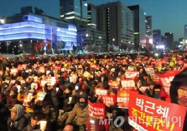 14 700 riot policemen of 184 companies were committed to quell the candlelight rally. The furious protesters marched towards the Blue House, the official residence of the prime minister and offices of business tycoons, shouting slogans in demand of retirement of the chief criminals and accomplices that involved in the hideous scandal.
