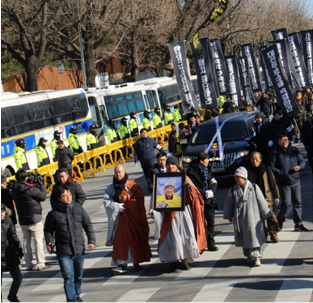 Prior to the candlelight action, there were a funeral ceremony of a Buddhist, who burned himself in demand of resignation of Park and justice and died after taken to a hospital and a memorial service of martyr Park Chong-churl who was killed by the brutal torture of the security authorities, 30 years ago.