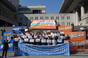 On Feb. 25, the Peace Action composed of 30 bodies including the Korean Confederation of Trade Unions, the National Federation of Peasants Association and the Solidarity for Progress launched action for peace outside the US embassy in Seoul.
