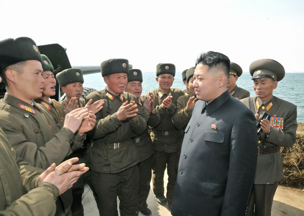 Kim Jong Uninspects a unit on Ryo Islet defending a forward post