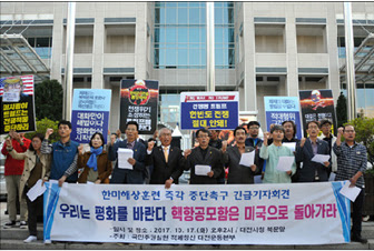 On Oct. 17, the Daejeon Headquarters of Movement for People’s Sovereignty and Removal of Evils held a press conference at which they said that they want peace, stop south Korea-U.S. joint maritime drill and nuclear aircraft carrier go back to the U.S.