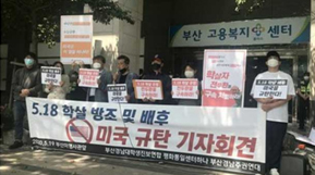 A press conference was held outside the US consulate in Busan at which they shouted slogan “The US, which abetted and engineered the Gwangju massacre, must apologize”.