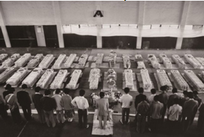 A performance of Chun Doo-hwan is aiming a gun at the Gwangju citizens under the control of the US